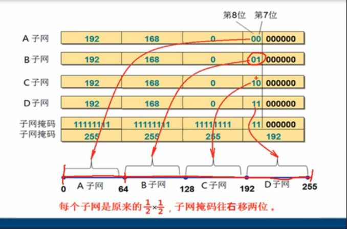 128192224240248252254255:不斷的變大,不斷的借位,子網變多,機器數變少上面的數轉成2進制,就是128=10000000后面加+1
