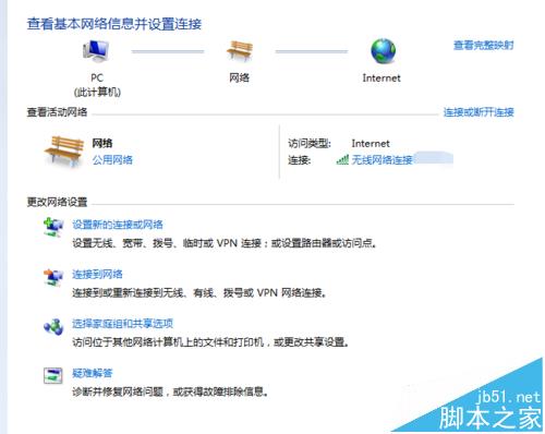 2、接著點擊"查看活動網絡“下面的圖標(公共網絡的圖標是一張長椅子,家庭網絡是一間房子,工作網絡是一棟工作樓)。