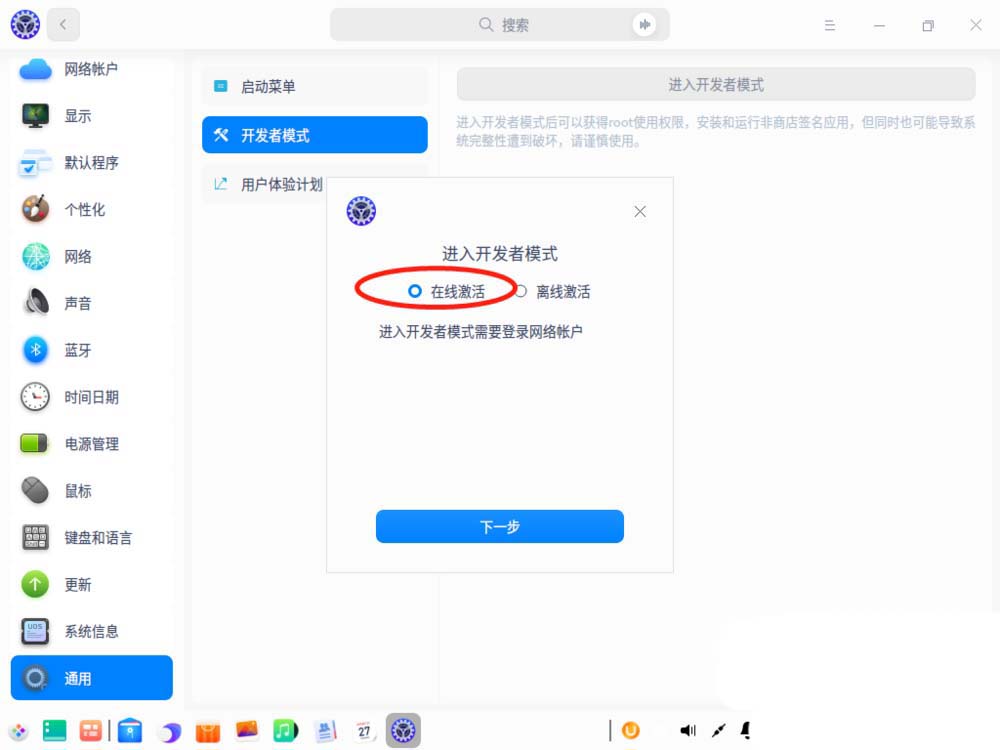 注:通過在線激活開發(fā)者模式可能出現(xiàn)授權(quán)錯(cuò)誤、賬號登錄錯(cuò)誤等(實(shí)際要登陸的賬號可能是原Deepin注冊賬號)