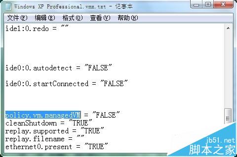 5、找到行:policy.vm.managedVM = "FALSE"并刪除,如圖: