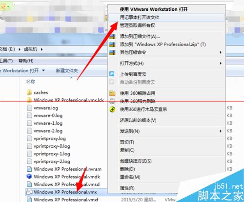 4、右鍵點擊虛擬機文件,選擇【以記事本方式打開】