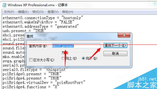 6、進入查找界面,在文本框輸入 vmci0.present 點擊查找下一個