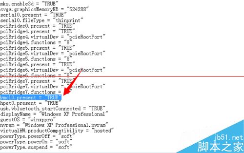7、查找到 vmci0.present="TRUE" 代碼,將true更改為false點擊保存即可