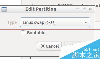 3、同樣點擊齒輪形狀的按鈕,選擇edit partition,type選擇為swap 0x82,確定,關閉對話框