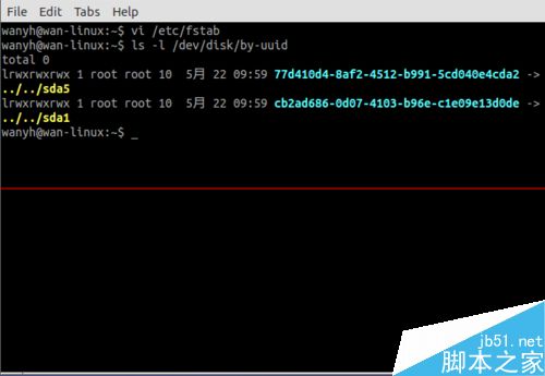 4、進入終端工具,輸入命令 :ls -l /dev/sda/by-uuid,查看swap分區的UUID,并復制此UUID