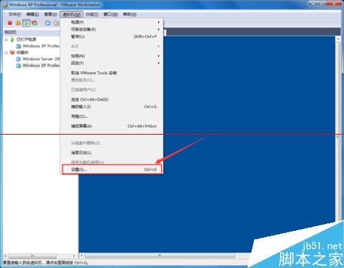 3、在下拉菜單中,點擊”設置“ 按鈕,打開虛擬機設置界面,如圖所示: