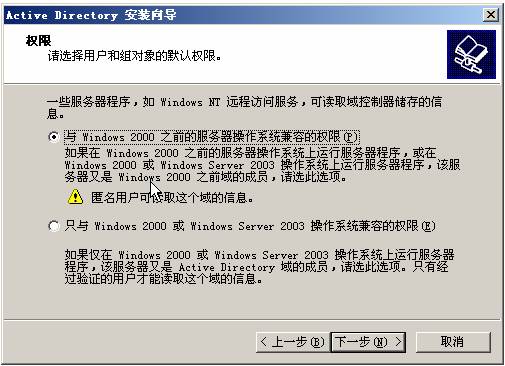 18. 選擇與windows 2000 之前的服務器操作系統兼容的權限