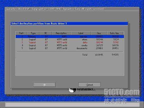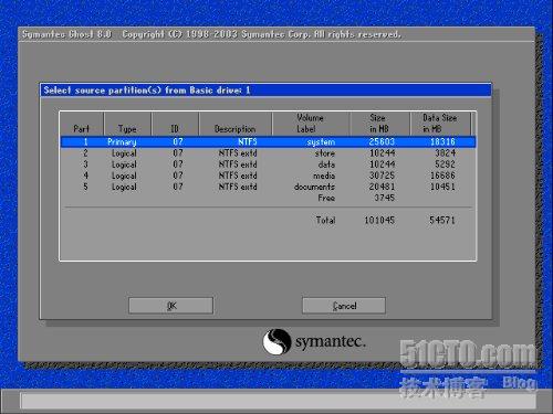 Local > Partion >To Partion :分區的對拷;就是將一個分區的內容COPY到另外的一個分區,這里會把另外的分區的數據覆蓋掉,這個要注意咯,像個人的系統備份一般都不會用這一個選項。