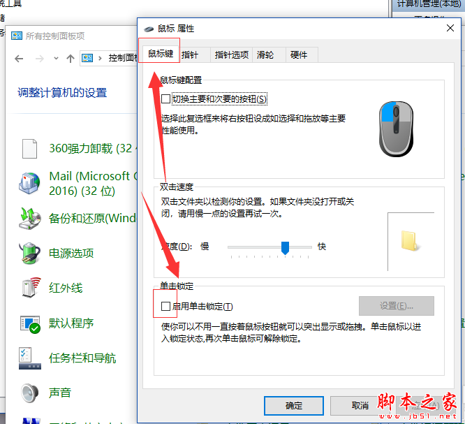 3、進入鼠標屬性界面,點擊鼠標鍵——啟用單擊鎖定,關閉這個功能,如圖,