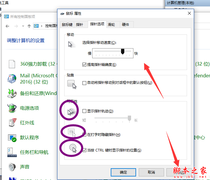 4、然后點擊“指針選項”,可以設置鼠標移動的速度和顯示軌跡。
