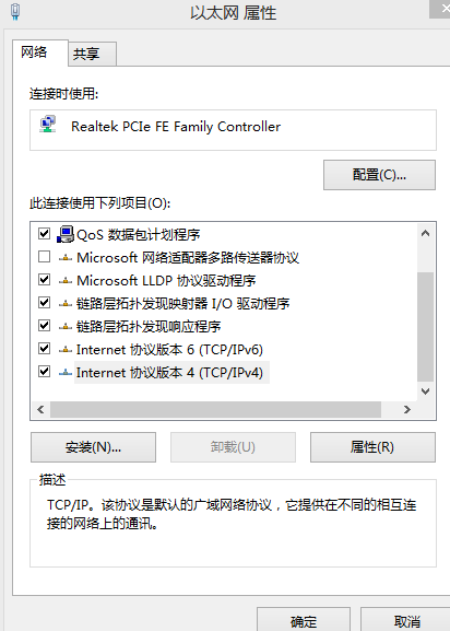 3、在彈出的窗口找到“Internet 協(xié)議版本 4 (TCP/IPv4)/屬性”,并雙擊屬性。