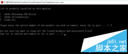 3、輸入:1,選擇清理全部文件,注意,即使存在以前安裝過的Adobe軟件,也建議全部清理,否則很容易出現(xiàn)殘留的情況導(dǎo)致安裝失敗;