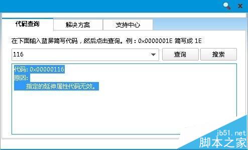 3、使用藍屏查詢工具,輸入116代碼可以看到故障的原因: