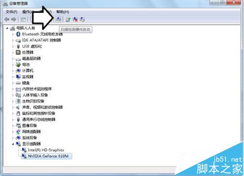 7、然后,再點擊工具欄上的掃描按鈕,找到顯卡設備,保持聯網,自動更新匹配的顯卡驅動程序即可。