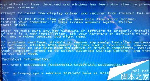 電腦開機藍屏atikmpag.sys 的問題。出現這個問題是因為顯卡驅動程序等的問題。