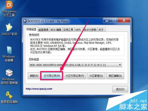 6、選擇好硬盤后,在下面,點擊“主引導記錄”這個按鈕。