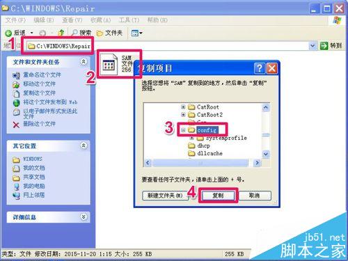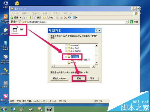 替換方法:進(jìn)入C:/Windows/Repait文件,直接復(fù)制SAM文件,把它復(fù)制到C:/Windows/System32/Config文件下。