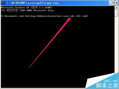 用戶創(chuàng)建完成后,還需要提升為管理員權(quán)限,其命令為net localgroup Administrator abc /add格式,回車。