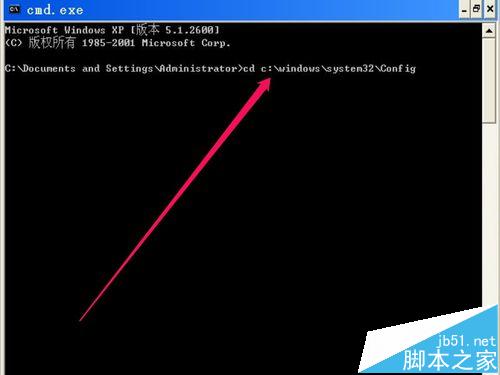 進(jìn)入這種安全模式后,什么都沒(méi)有,只有一個(gè)cmd命令提示框,先在這個(gè)框中輸入cd c:/windows/system32/Config命令,回車。這條命令的意思是,切換到Config文件夾,cd是切換目錄命令,后面為切換文件夾地址路徑。