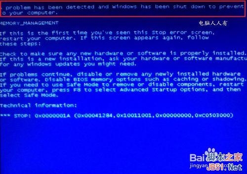 1、A problem has been detected and Windows has been shut down to prevent damage to your computer.
