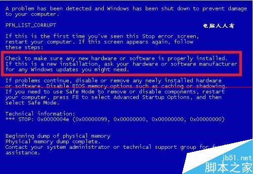 STOP:0x0000004E(停機簡碼4E)后面的內存溢出地址對普通用戶來說沒有意義。