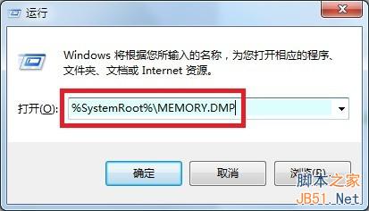 11、然后,在運行中粘貼路徑:%SystemRoot%/MEMORY.DMP 打開文件。