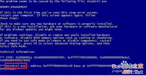 4、其實,這張截圖還有一個更重要的訊息是:顯示了出錯的ntoskrnl.exe文件名。