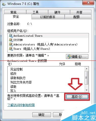 1、如果授權的過程中發生異常,可以這樣做:右鍵點擊需要加權的磁盤→屬性→磁盤屬性→安全→高級