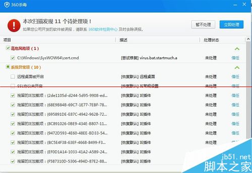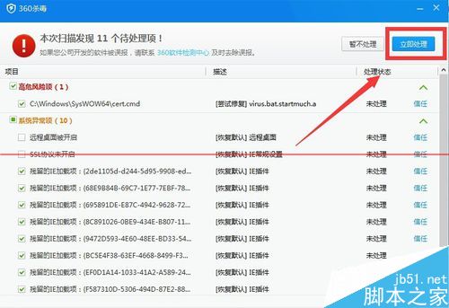 2.4等電腦殺毒軟件查殺完成之后,點擊“立即處理”即可除去病毒,如圖