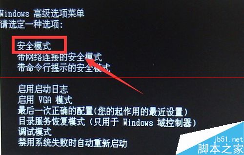 2.2選擇通過鍵盤上的上下左右鍵,選擇“安全模式”,進入電腦系統(安全模式)下,如圖