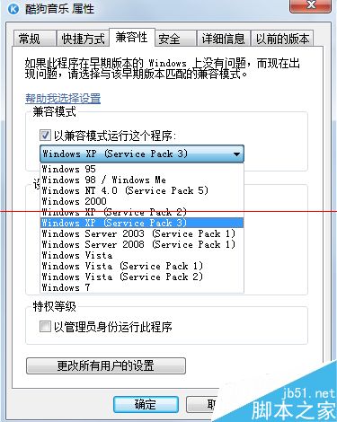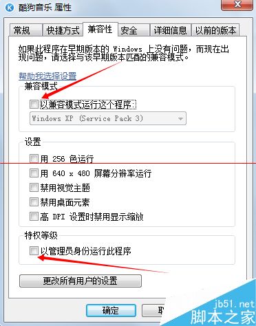 3、進入兼容性界面,將“以兼容性運行此程序”和下方的“以管理員身份運行此程序”勾選