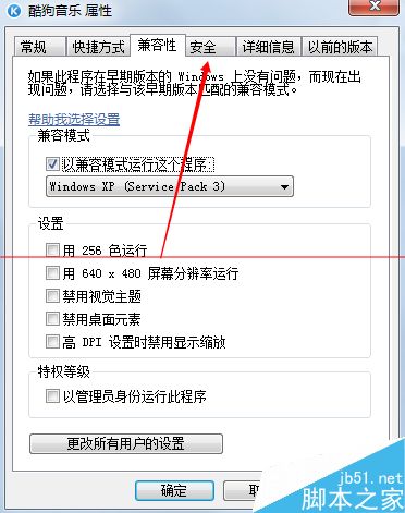 2、進入程序屬性對話框,點擊上方菜單欄處的【兼容性】