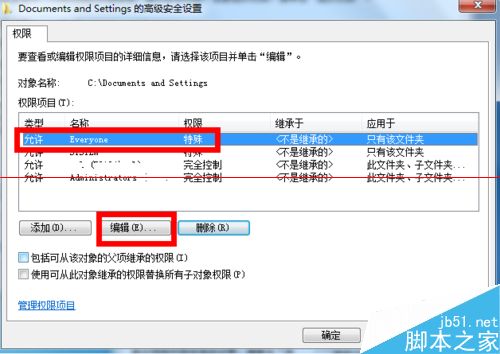 5、繼續選擇允許類型的everyone點擊下方的編輯按鈕!如下圖所示!