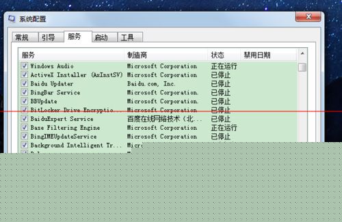 3、再在“系統配置”上面找到“服務”選項。去掉不需要程序前面的√。選擇“應用”和“確定”。