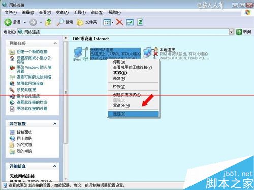 2、右鍵點擊本地連接(有線或者無線)→屬性