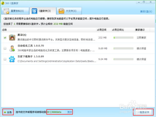 5、將C盤所有軟件搬到內存比較大D,或E盤上去,在搬家時確定所有程序在關閉狀態下。