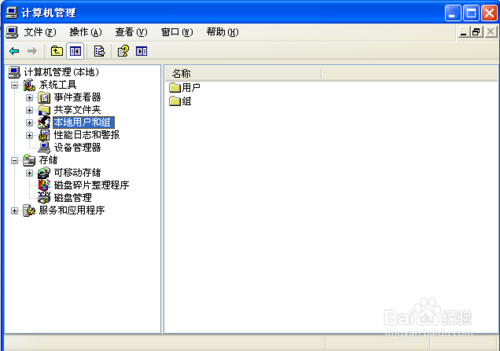 2、點擊本地用戶和組--點擊用戶,此處顯示所有建立的用戶名。見圖四圖五。