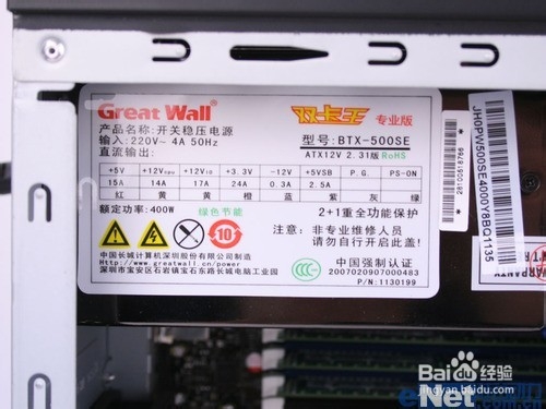 5、然后就是更換一個能用的電源去試一下,一般的常見故障都是直接把電源替換掉就可以正常的開機了。在此說明下:高功率的電源可以用在低功耗的電腦上,但高功耗的電腦千萬不要用低功率的電源,不然強行使用會造成死機和不斷重啟,或者就是溫度過高,最怕的就是會發生燒毀主板的現象。