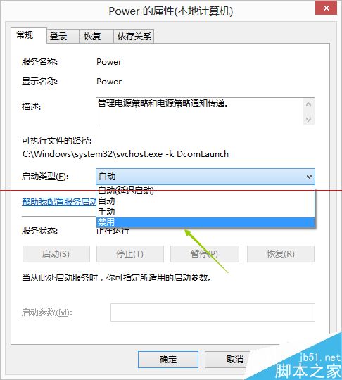 3、從服務的屬性中禁止此項程序運行,如圖所示。