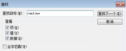3、點擊,出現一個查找框,輸入runtime,如下圖所示