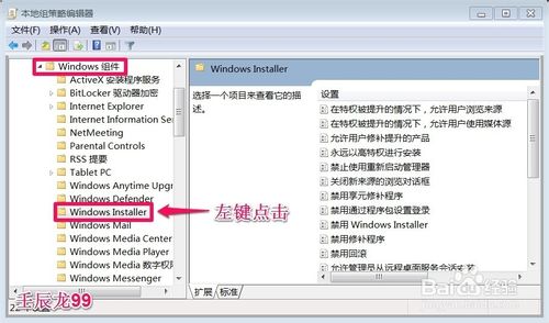 3、在管理模板的展開項(xiàng)中找到:windows Installer,并左鍵點(diǎn)擊:windows Installer;