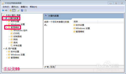 2、在打開的本地組策略編輯器窗口,左鍵點(diǎn)擊:計(jì)算機(jī)配置 - 管理模板展開;