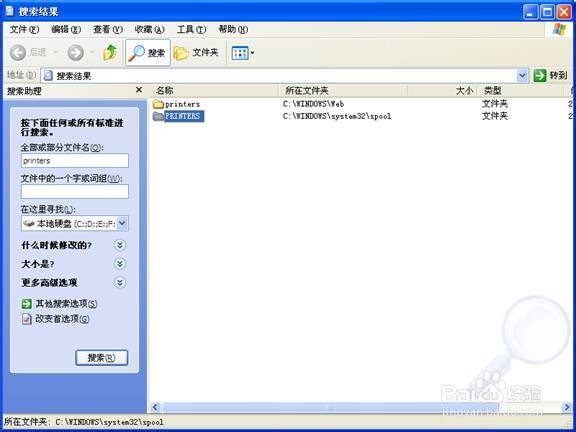 找到PRINTERS文件夾,雙擊打開,刪除里面的文件。