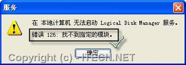 嘗試在“服務”管理單元窗口手動啟動服務時,系統提示“錯誤126:找不到指定的模塊”(Error 126: The specified module could not be found.),如圖6所示。