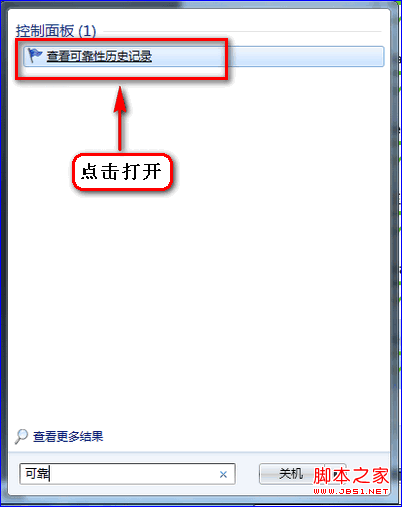 1. 在“控制面板”中打開“操作中心”,在“維護(hù)”選項(xiàng)下查找“查看可靠性歷史記錄”鏈接。還可以直接在開始菜單“搜索”中鍵入“Reliability Monitor”或“查看可靠性歷史記錄”或直接搜索“可靠”,然后打開“查看可靠性歷史記錄”鏈接。(Windows8系統(tǒng)可按下Windows鍵+W鍵進(jìn)行搜索)如下圖: