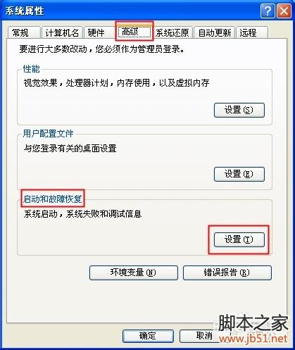 2、點擊系統屬性高級選項卡,點擊啟動和故障恢復設置菜單。