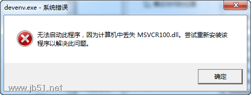 錯誤的意思也很簡單,就是MSVCR100.dll這個文件損壞(丟失)了,我百度了一下,網上很多朋友都因為這個錯誤,找不到解決的辦法不得已而重裝了VS2010。