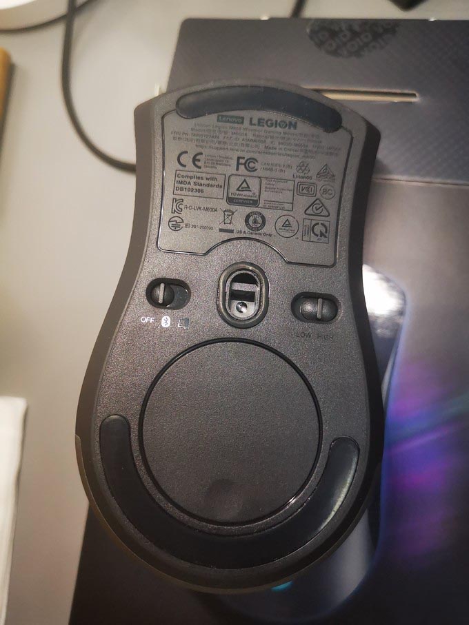鼠標的背面有兩個開關。左側開關用來快速在關閉-藍牙-2.4G無線模式中快速切換。實際使用下來使用過程中進行切換,電腦的反應十分迅速,并沒有任何割裂感。
