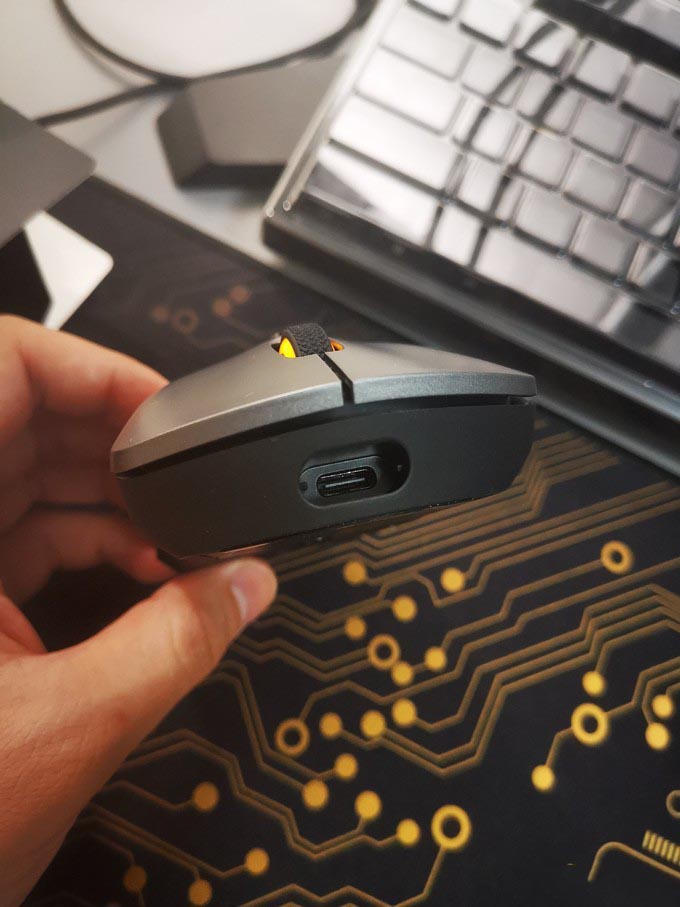 鼠標充電口采用USB-C口,并且自帶的線擁有兩個固定槽,使得插上以后線材不易松動,更加穩固。并且實測普通的安卓手機充電線連接至電腦也能夠使用鼠標。