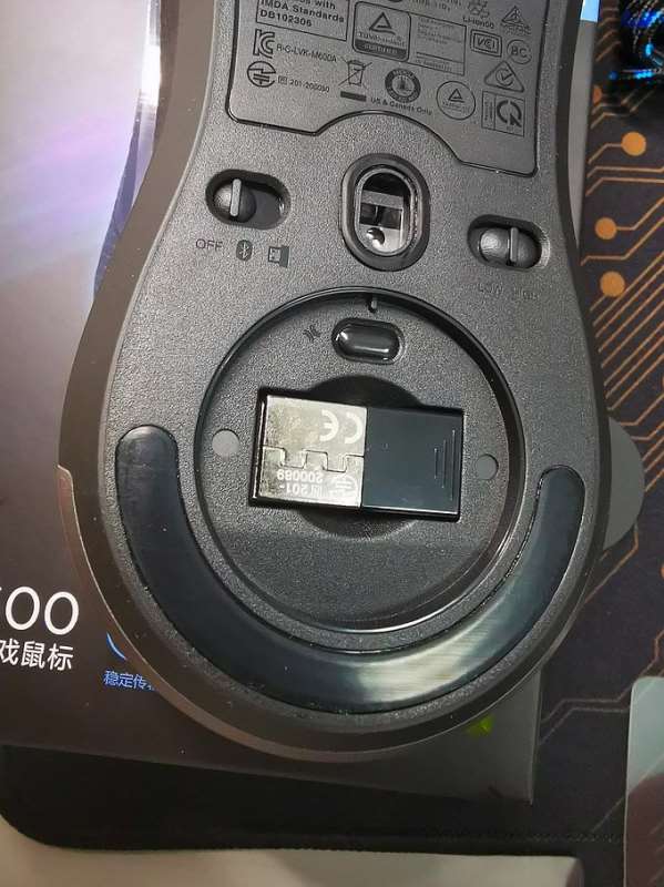筆者還同時擁有華碩靈刃無線鼠標,ROG的接收器收納槽較松,筆者在更換電池的時候,接收器偶爾從鼠標中掉出。而M600既設計了磁吸式收納,又通過內置電池的操作來減去了頻繁更換電池的麻煩,可以說給游戲-辦公人群帶來了很多方便。并且在無線接收器的尾部增加了突出了的部分,插拔接收器變得更加方便了,小細節好評。